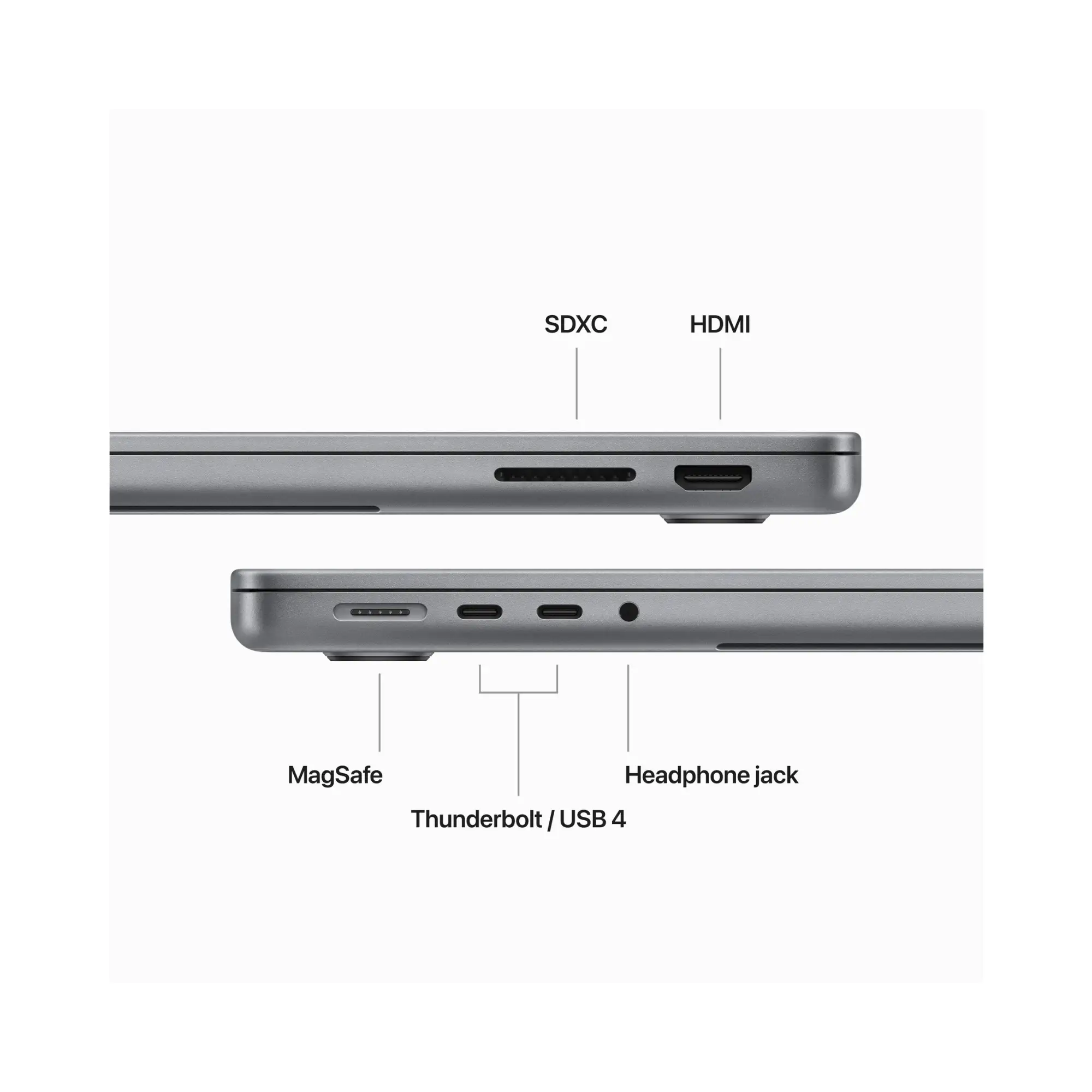 CONNECT EVERYTHING - This MacBook Pro has a MagSafe charging port, two Thunderbolt / USB 4 ports, an SDXC card slot, an HDMI port and a headphone jack. It supports fast wireless connections with Wi-Fi 6E and Bluetooth 5.3 as well as an external display.